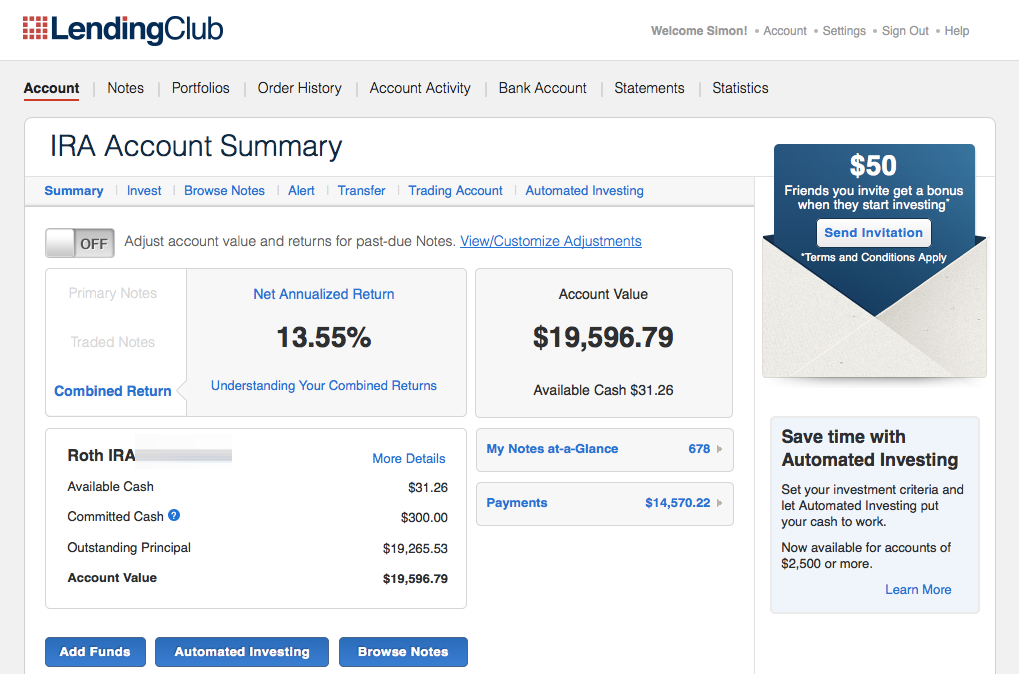 Simon, I am just curious how your IRA could be linked to LendingClub. I got the overall concept though and sounds like a great way to invest.