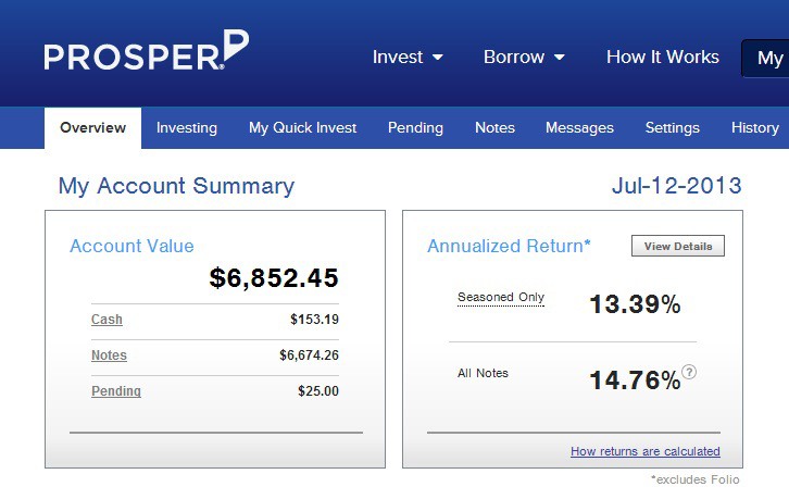 As you can see in the following table, I continue to celebrate thriving positive returns on both Lending Club and Prosper.